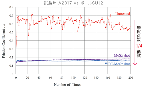 二硫化モリブデンショットは、固体潤滑材である二硫化モリブデン粉末を圧縮気体で金属部品表層へ
